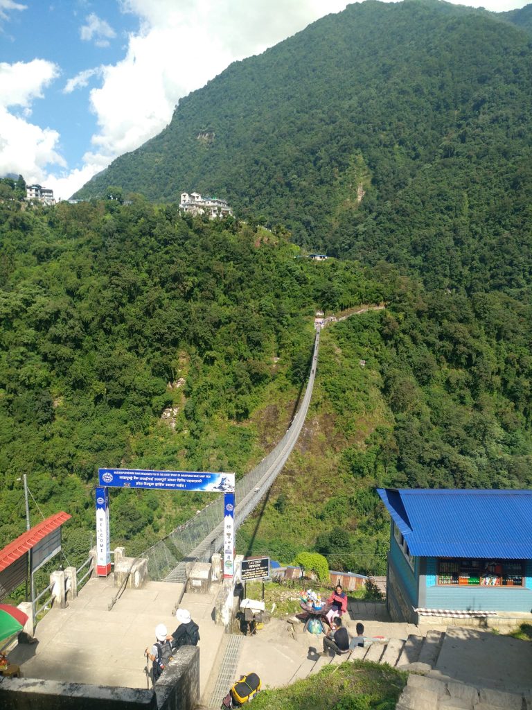 El final de Jhinu y su larguísimo puente colgante.