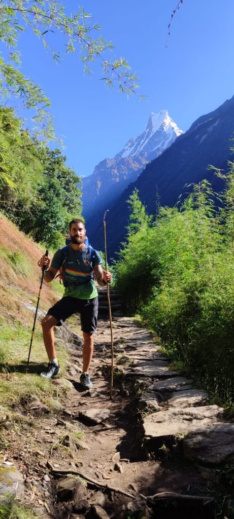 Esta parte del sendero no tiene mucho misterio. Vas caminando por bosque-jungla aunque de vez en cuando la recompensa es una preciosa vista del Machapuchare y su cima en forma de cola de pez. Es increíble y no sé por qué, pero a mi me atrapa el contemplarlo.