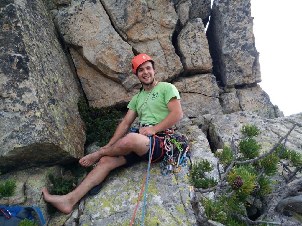 Largo 3 bifurcado en 2 partes: sale hacia la derecha exageradamente, sigue por el espolón y vuelve a la izquierda. Rozamiento exquisito para rasgar cuerdas y no ver a tu compañero en la sección clave. De hecho, lo pierdes de visto a los 3 segundos de empezar el largo. Presupones que estará ratoneando seguros (o mirando el camino correcto) mientras se para y escala/navega cuando chupa cuerda.